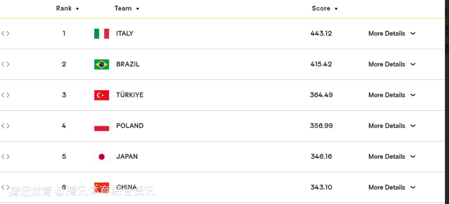 2025-06-08 22:40北京时间6月8日,世界女排联赛北京站收官日比赛中,中国女排以2-3惜败土耳其女排。本场比赛过后,中国女排损失4.27分世界积分,被日本女排反超,排名世界第六,前五名分别是意大利、巴西、土耳其、波兰、日本。