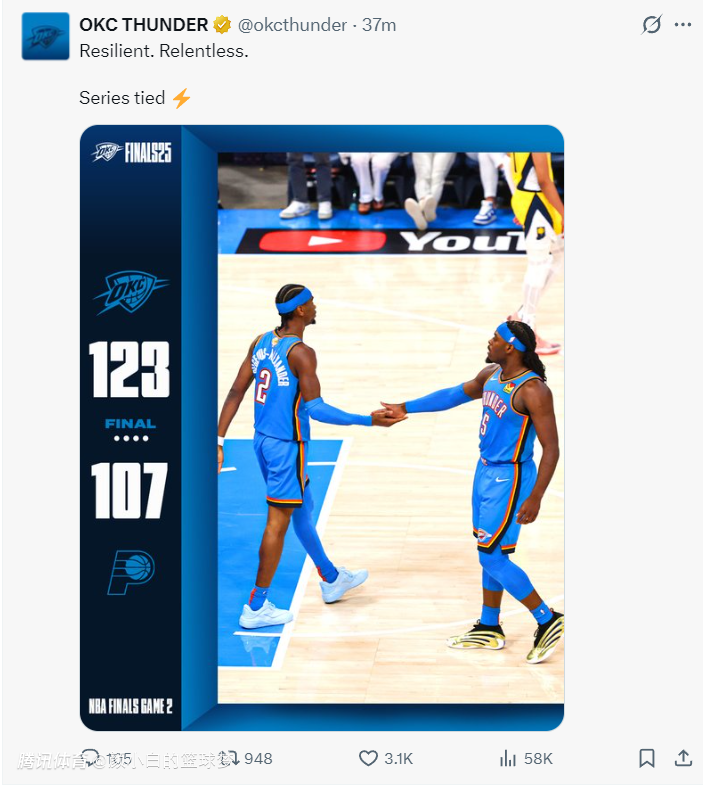 2025-06-09 11:40北京时间6月9日,总决赛G2,雷霆以123-107击败步行者,大比分1-1扳平。这场比赛雷霆全队五人至少15分以上,杰威算是效率最差的那个,全场比赛14中5拿到19分,虽然球队赢球了但杰威的个人效率还是落下话柄。