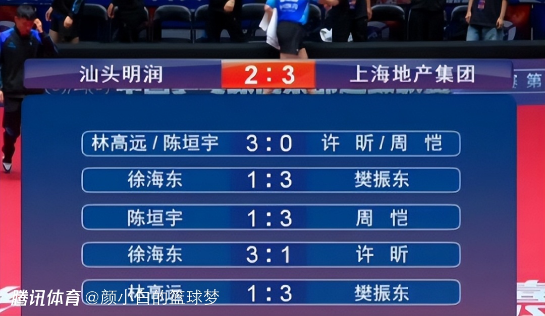 第一盘:许昕/周恺0比3林高远/陈垣宇【9-11,6-11,9-11】;