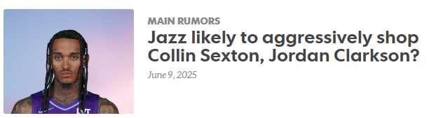 美记:爵士启动休赛期清洗计划 塞克斯顿和克拉克森成主要交易目标