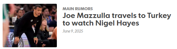 2025-06-10 06:30北京时间6月10日,根据EuroHoops的报道显示,凯尔特人主帅马祖拉近日专程前往土耳其考察美国前锋奈杰尔-海耶斯-戴维斯,现场观看了他的表现。