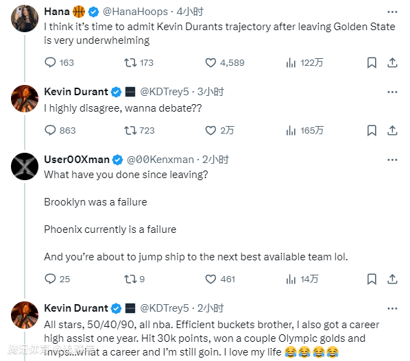 离开勇士后彻底失败?杜兰特列荣誉反驳 又与球迷吵架回击各种言论