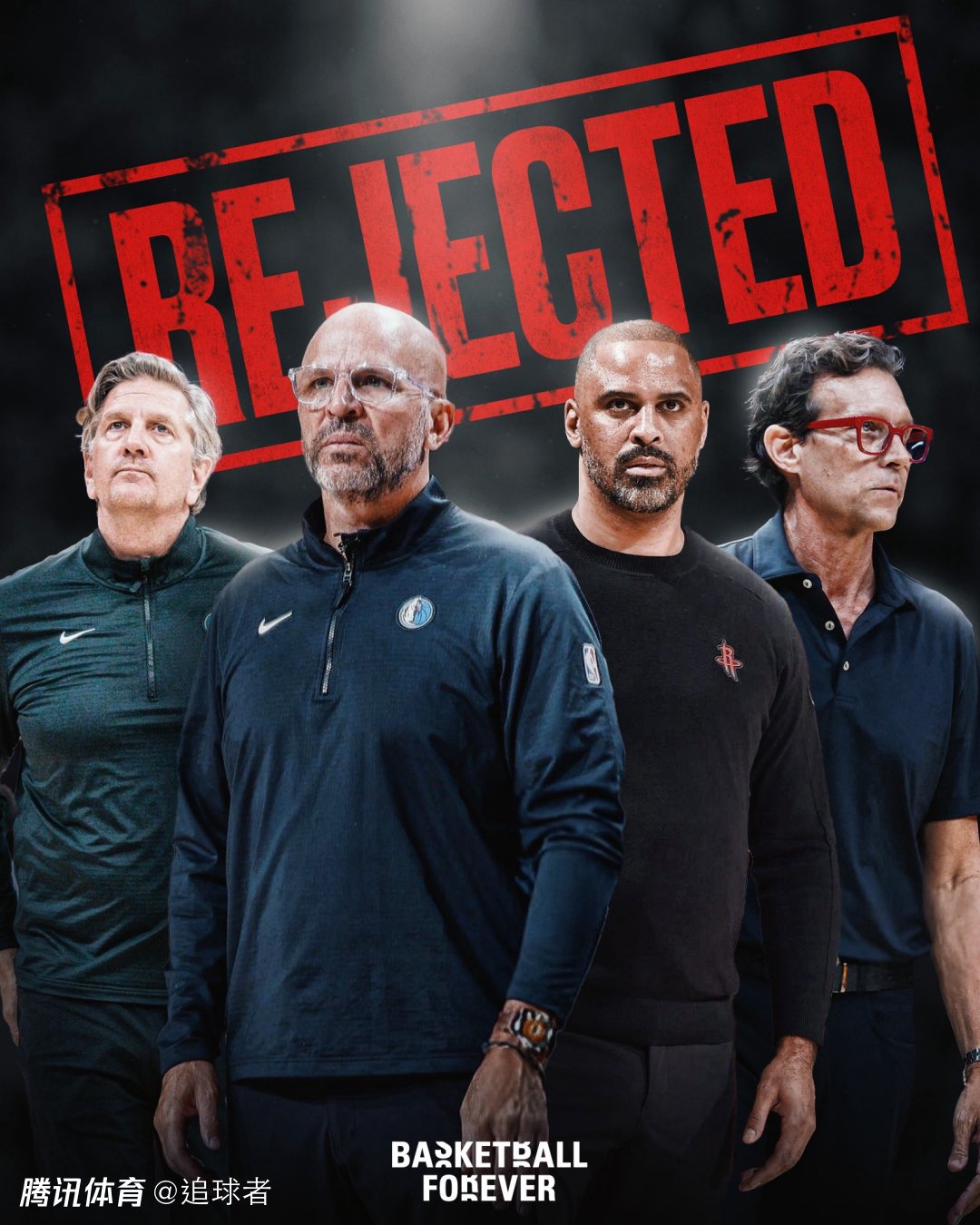 据报道,尼克斯就主帅一职向火箭申请面试乌度卡,被直接拒绝;申请面试森林狼主帅芬奇和独行侠主帅基德也被拒绝,请求面试老鹰主帅斯奈德同样吃到闭门羹。