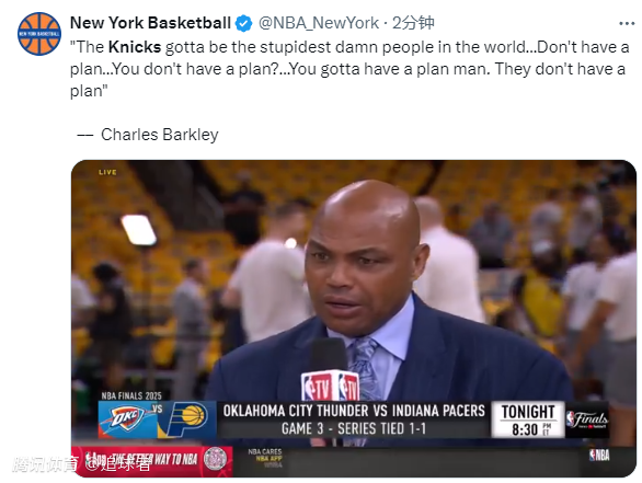NBA名宿巴克利在节目中表示:尼克斯绝对是世界上最愚蠢的团队,他们根本没计划,连计划都没有?没计划可不行,他们真的毫无计划。