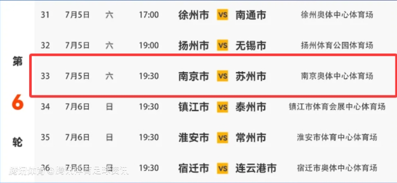 “苏超”第六轮,南京将在主场迎来苏州的挑战,比赛时间将于7月5日在南京奥体中心体育场进行。