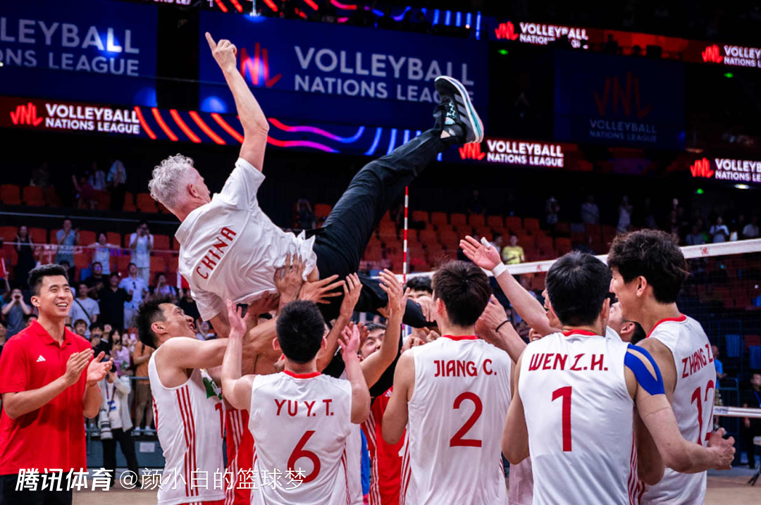这场胜利后,中国男排全队将主帅海宁举起来“飞天”庆祝,海宁单手指天十分霸气,这场比赛让中国男排的士气大涨。