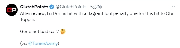 多尔特防守时击中托平头部 裁判观看回放后升级为一级恶意犯规