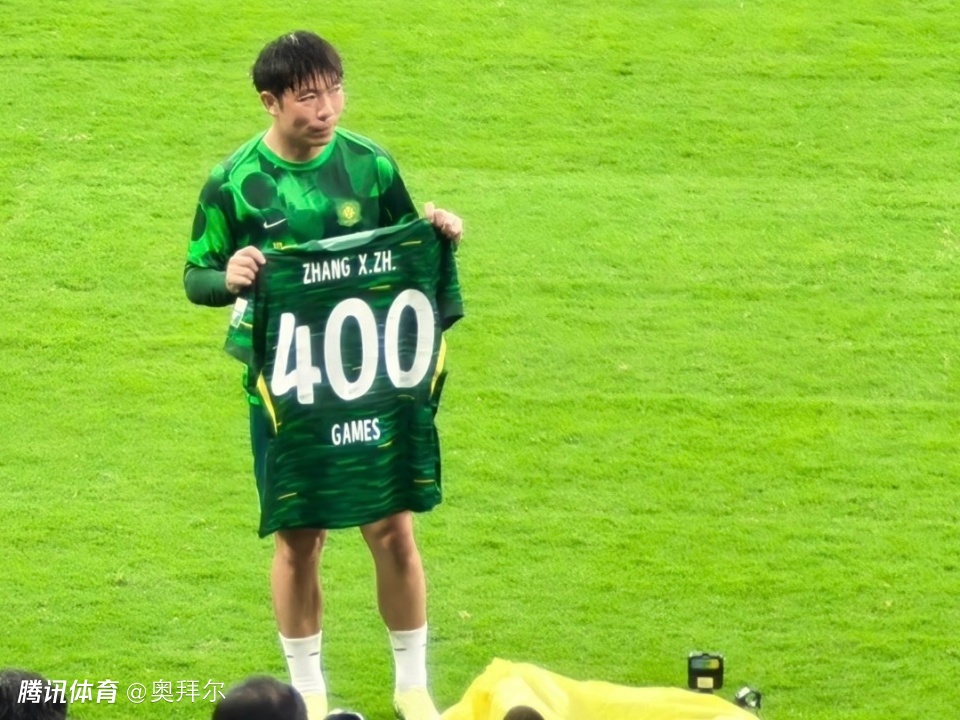 比赛开始之前,李明为张稀哲送上了400场纪念球衣,国安球迷更是打出巨幅TIFO,纪念张稀哲的400场里程碑。