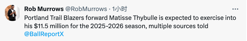 2025-06-16 12:40北京时间6月16日,据美记Rob Murrows报道,开拓者球员塞布尔预计执行25-26赛季1150万美元的球员选项,继续留队。