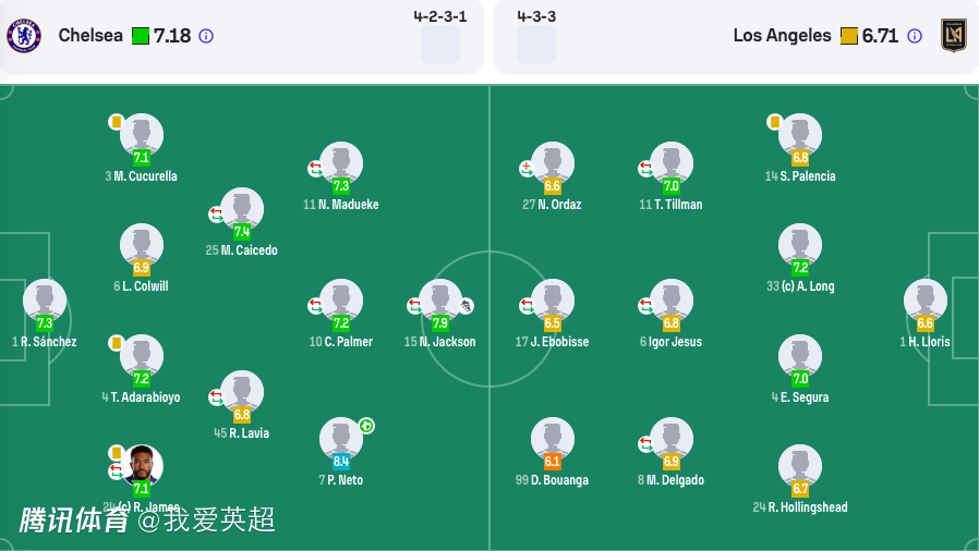 切尔西首发:1-桑切斯、24-詹姆斯(46'27-古斯托)、4-阿达拉比奥尤、6-科尔维尔、3-库库雷利亚、25-凯塞多(84'14-埃苏戈)、45-拉维亚(46'8-恩佐)、10-帕尔默(84'18-恩昆库)、7-内托、11-马杜埃凯(64'32-乔治)、15-杰克逊(64'9-德拉普)