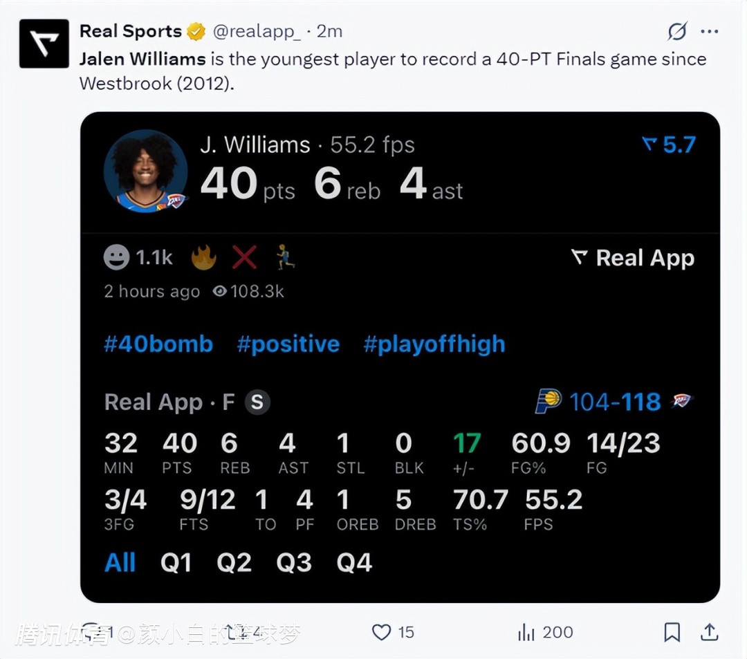 杰威也成为2012年威少后雷霆队史最年轻的40+先生。