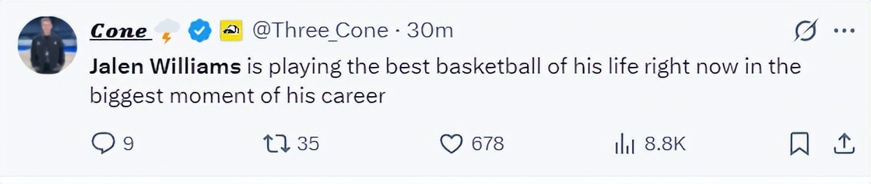 ESPN记者布莱恩-文霍斯特:联盟中很多人相信,杰威可能会跟斯科特-皮蓬一样有那样的职业生涯。
