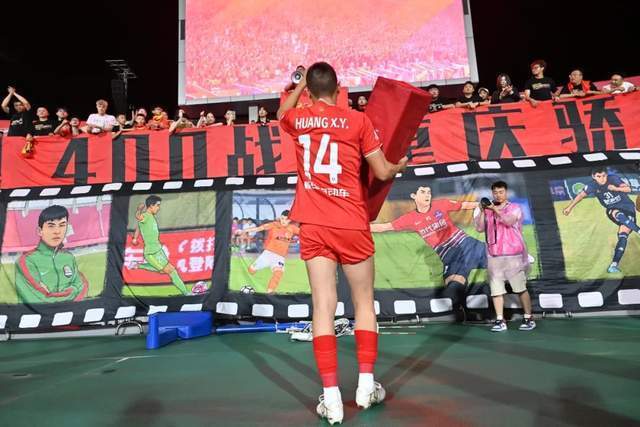 2025-06-17 11:40记者鲁蜜报道 2025年5月31日,重庆铜梁龙客场对阵佛山南狮,黄希扬在第81分钟登场,达成个人职业生涯400场成就;2025年6月14日,是黄希扬的40岁生日。6月14日,重庆铜梁龙主场1比1战平大连鲲城,赛前,铜梁龙俱乐部为黄希扬举办了一个隆重的400场纪念仪式。