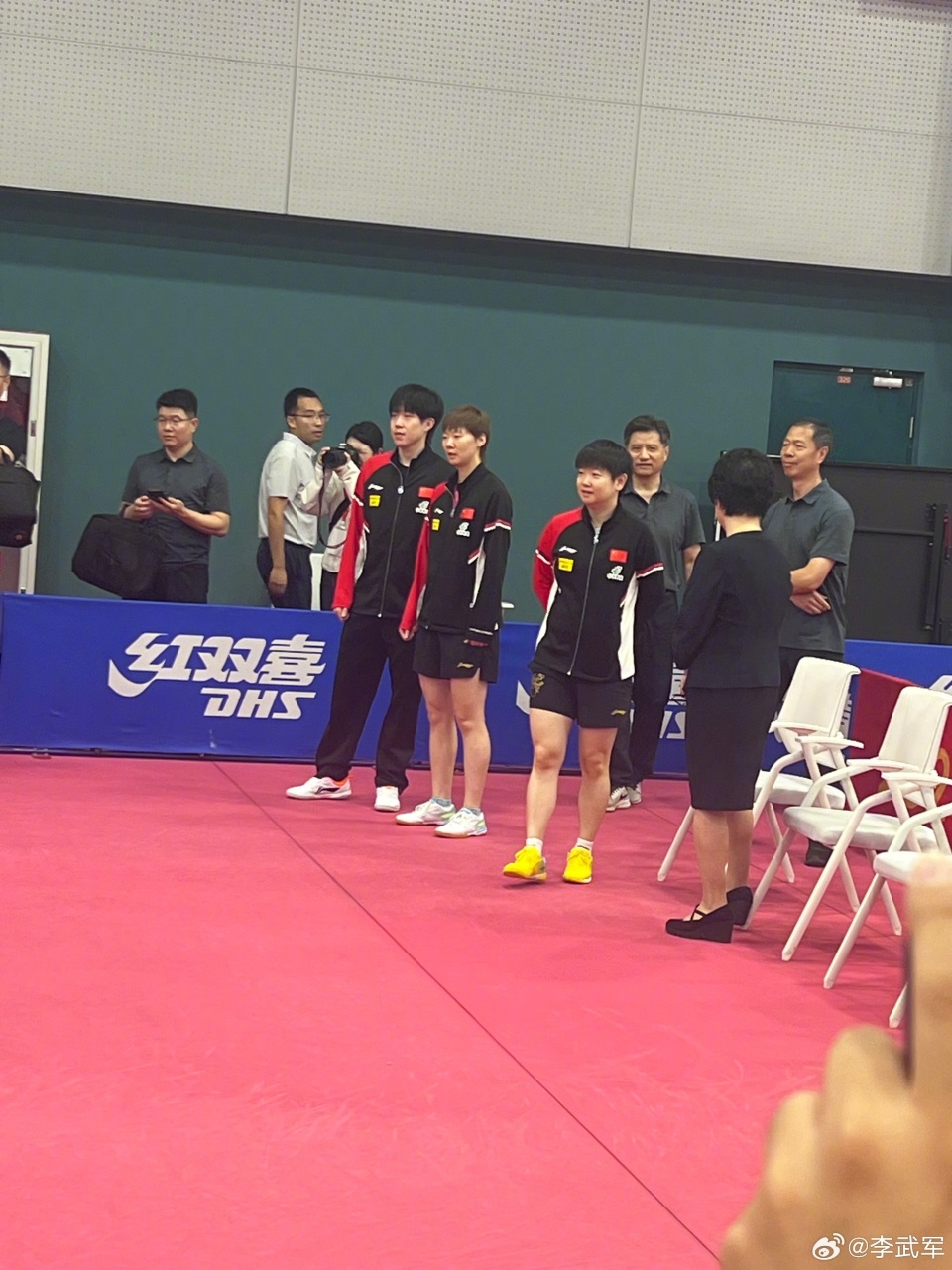 在多哈世乒赛结束之后,国乒参赛选手进入休整期。不久前开打的乒超联赛第一阶段比赛,国乒主力都在各支队伍的参赛名单中,不过为期三天的比赛,孙颖莎没有出战,王曼昱也只打了一场女双,王楚钦在最后一轮比赛中进行轮休,大家用自己的方式进行调整。在乒超联赛第一阶段结束之后,国乒选手们继续训练,备战7月3日-13日进行的WTT美国大满贯。在训练之余,王楚钦、孙颖莎、王曼昱在中国乒协主席王励勤的带领下出席了机关乒乓球赛开幕式,三人都穿着国乒队服亮相。