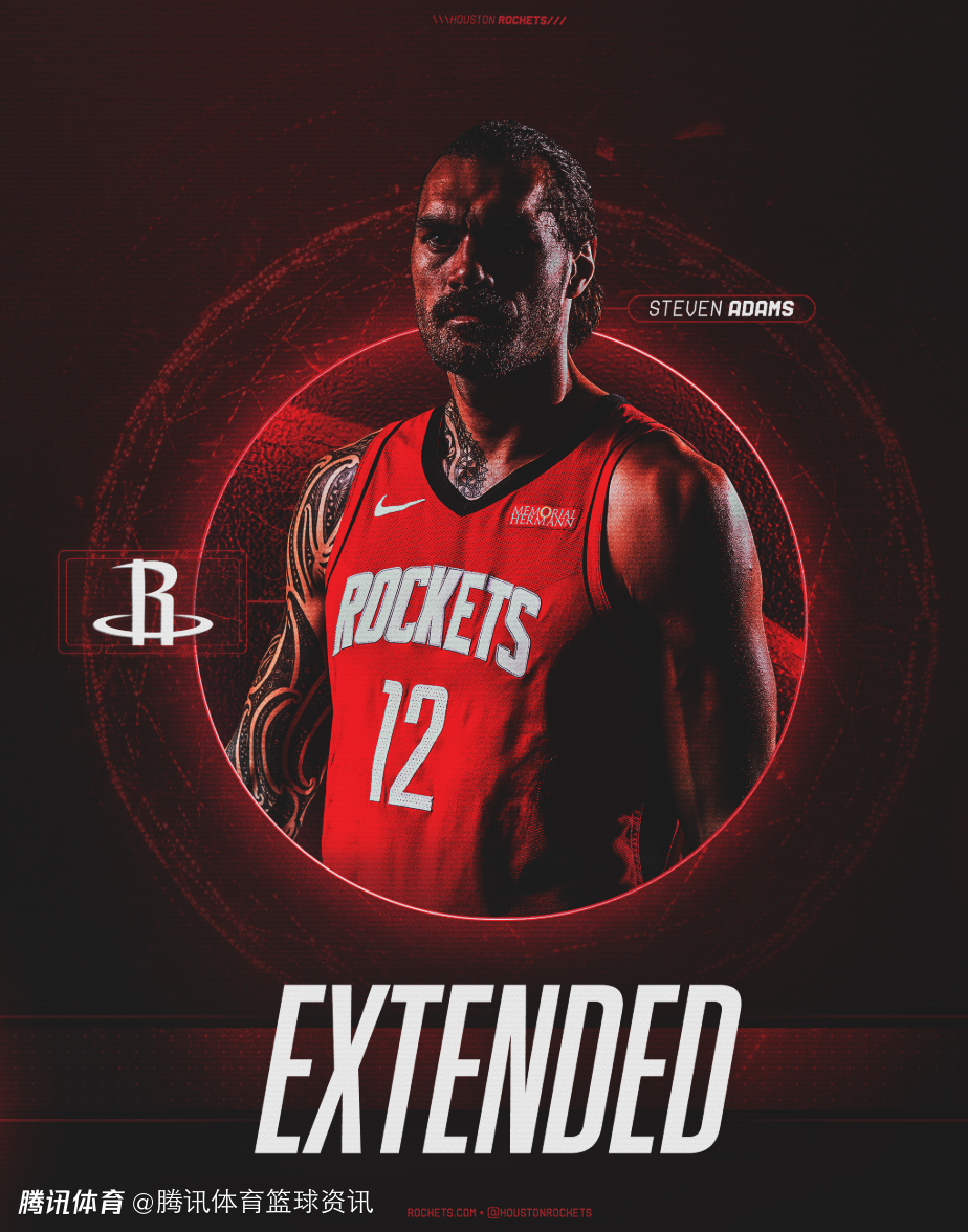 火箭官方在宣布续约亚当斯的同时,也列出了他的一项数据:“自去年12月以来,亚当斯在球队正负值榜单中位列第二(+189),且每36分钟场均贡献7.5个进攻篮板,这一数据创下了单赛季出战40+场球员的历史新高。”