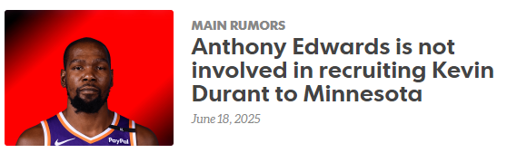 Marc J. Spears表示:“我和一些接近爱德华兹的人聊过,这件事根本算不上新闻。他目前在亚特兰大训练,他喜欢自己的前队友,也喜欢现在的队友。我身边一些知情人士说,他正专注于球队的下一步计划,并没有飞往洛杉矶试图说服杜兰特改变任何想法。”