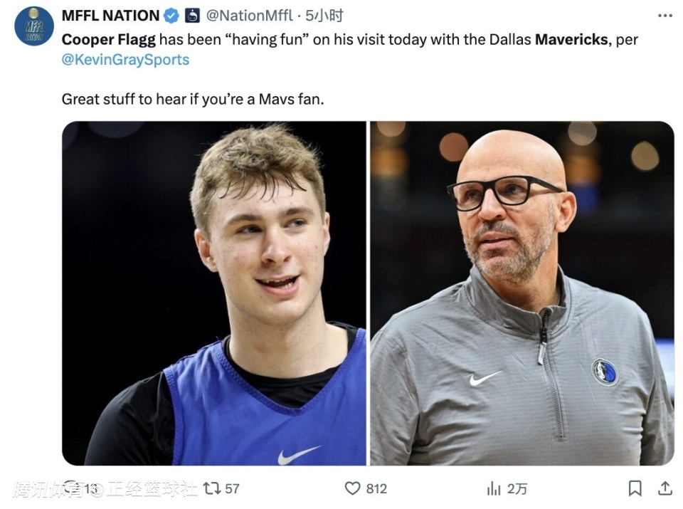 随后据著名记者Kevin Gray Jr.报道称,在弗拉格造访独行侠队的过程中,双方期间“都很愉快”。