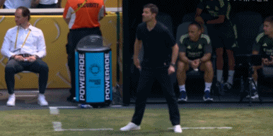 43岁的阿隆索握拳振臂欢呼!这是阿隆索的皇马执教首秀,第1球由21岁小将贡萨洛-加西亚打进。