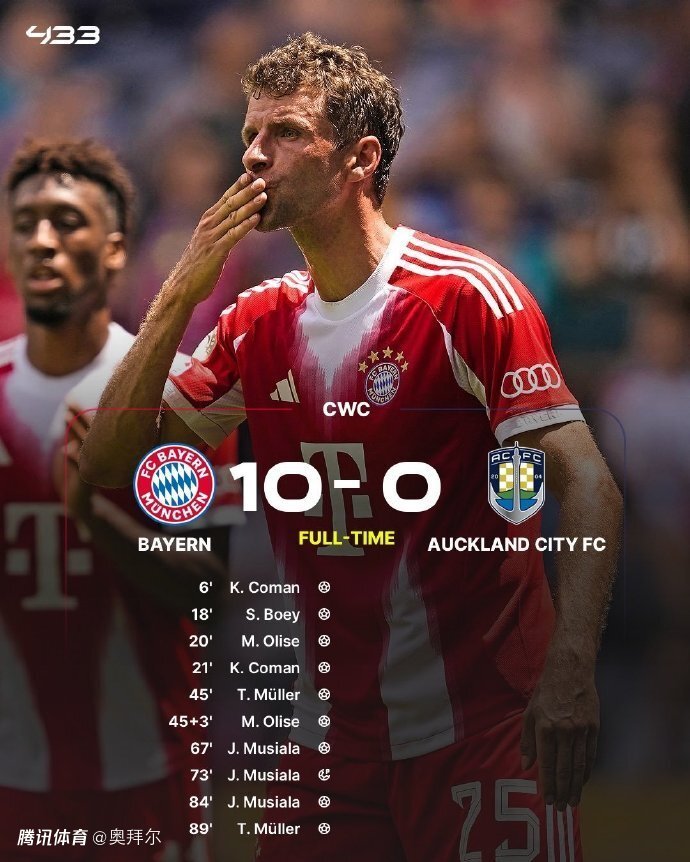 对阵奥克兰,拜仁足足打入10球,创造了一系列的纪录,成为世俱杯单场进球最多、第一支进球上双的球队,也创造世俱杯史上最大比分取胜纪录以及世俱杯单场进球最多纪录。同时,拜仁也创造国外杯赛最大比分取胜纪录。