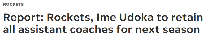 拒多队挖角!火箭拟保持团队稳定 乌度卡教练组预计全员留任冲击新赛季