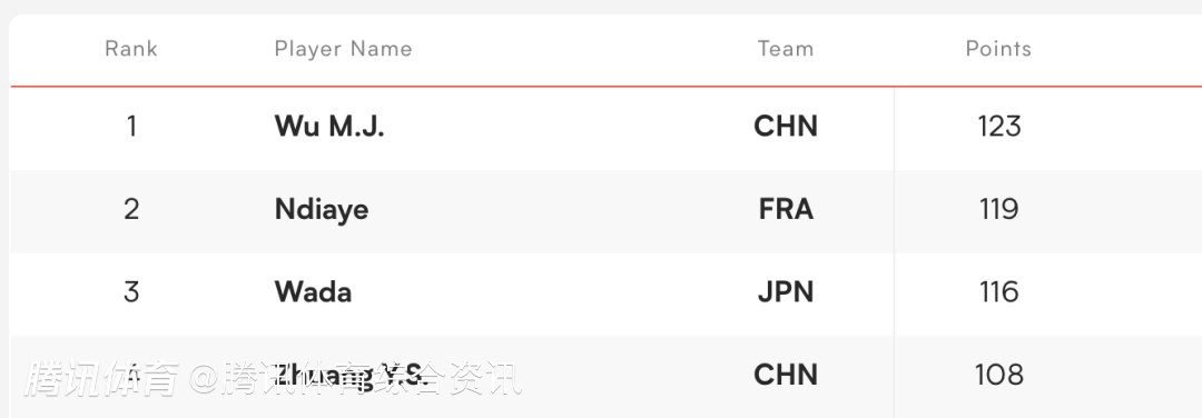 日本女排的头号得分手和田由纪子目前以总得分116分排在得分榜第三位,上场和意大利的比赛中,她一人独揽全队最高的28分;中国女排方面,有两人跻身得分榜前五,吴梦洁以123分领跑得分榜,庄宇珊则是以108分并列得分榜第四位。