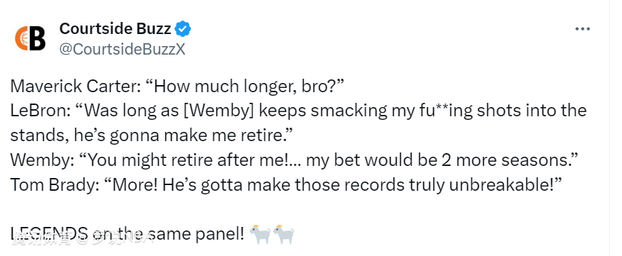 40岁詹姆斯回应退役:文班迟早得让我退休 没法打得像布雷迪那么久
