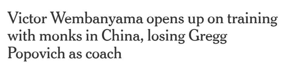 “每天练功夫。那是座素食寺庙,类似修道院……我在那里与世隔绝。”文班亚马补充道,那里的餐食大多是西葫芦和米粉。为了维持体重(他告诉哈特自己目前体重差不多是111公斤),他不得不偷偷溜出去吃些肉类。