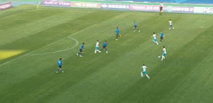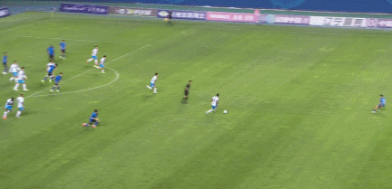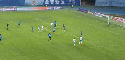 第32分钟,青岛西海岸前场直塞球找到禁区内的刘小龙,刘小龙晃开防守后的低射,被后卫封堵。