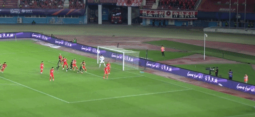 第54分钟,陶强龙主罚右侧角球,卢卡斯禁区中路铲射击中横梁。第59分钟,王上源中圈直塞,钟义浩反越位突入禁区之后斜射破门,1比1!