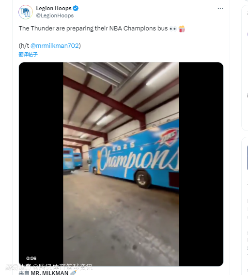 2025-06-23 07:00北京时间6月23日,NBA总决赛G7比赛即将打响,雷霆将坐镇主场对阵步行者,双方目前在系列赛中战成3-3。根据美媒Legion Hoops转发的动态显示,雷霆方面已提前做好夺冠准备,写有“冠军2025”的夺冠庆祝大巴已准备就绪。