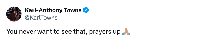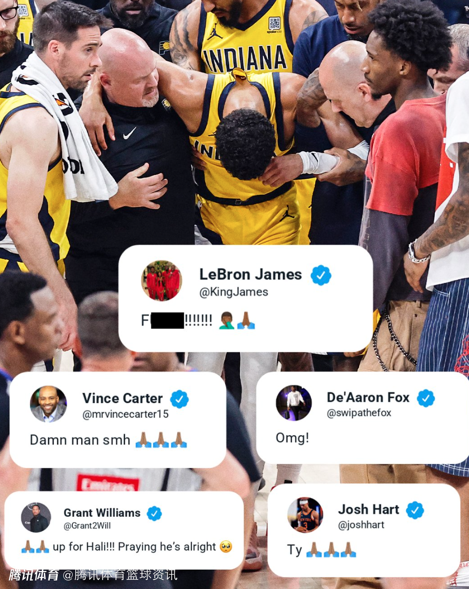 在哈利伯顿伤退之前,他首发出战7分钟,5投3中,三分球4中3,拿到9分。而在哈利伯顿受伤后,多名球星也更推,为他祈福,其中包括詹姆斯、文斯-卡特、米切尔、特雷-杨等人,以及几名尼克斯球员(步行者正是在东决淘汰了尼克斯,从而跻身总决赛)唐斯、布伦森、哈特也都第一时间为哈利伯顿送上祈福。