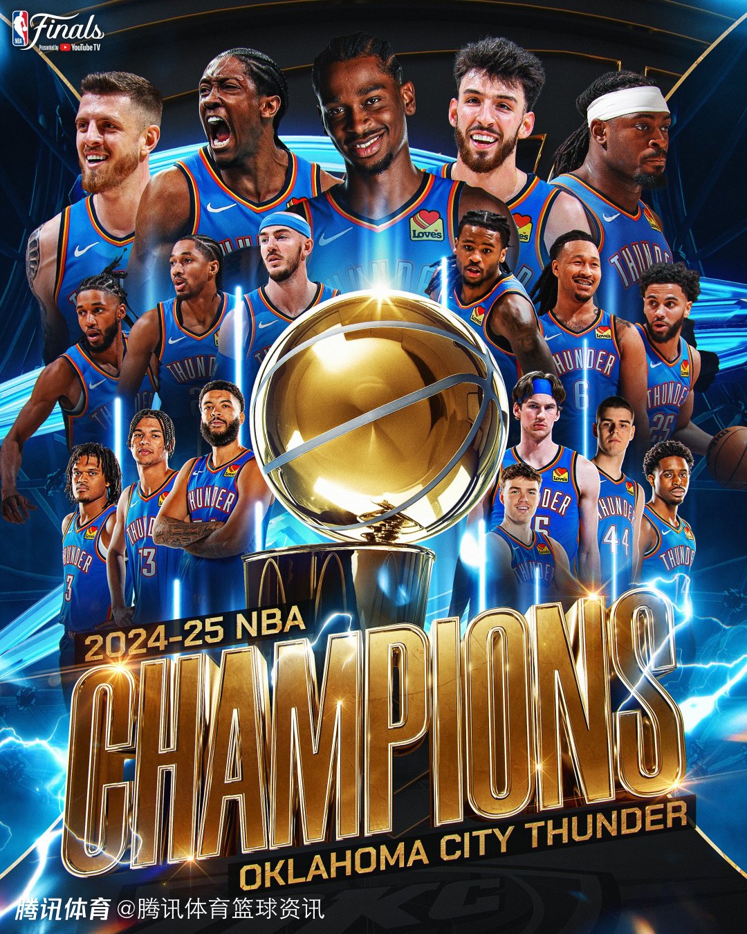 2025-06-23 11:30北京时间6月23日,NBA总决赛继续进行,雷霆队103-91击败步行者队,总比分4-3拿到总冠军。这是雷霆队搬迁到俄克拉荷马城队后拿到的首座总冠军,而NBA记者Kevin O'Connor发文表示,这一冠,或许只是雷霆王朝的开始。