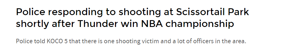 乐极生悲!雷霆主场对面公园发生枪击事件 当地警方紧急入场疏散球迷