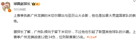 据探长了解,广州队倾向于留下米切尔,不过他也引起了联盟其他球队的兴趣。上赛季广州龙狮战绩12胜34负,位列联赛第15名。