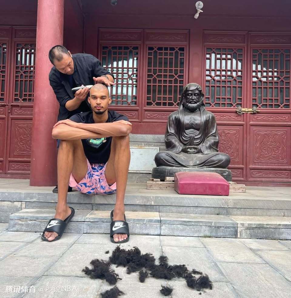 文班亚马到少林寺修行后,最显著的外形改变是发型——僧侣们首先要求他剃光头,他毫不犹豫地照做了。“我现在可能算佛教徒了,”他在回到纽约后开玩笑说,“这很值得。”这次社媒中,文班亚马也晒出了自己剃度的一幕,地上都是他的头发。