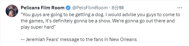 费尔斯:鹈鹕将得到一头“斗牛犬” 希望新奥尔良球迷都来看我打球