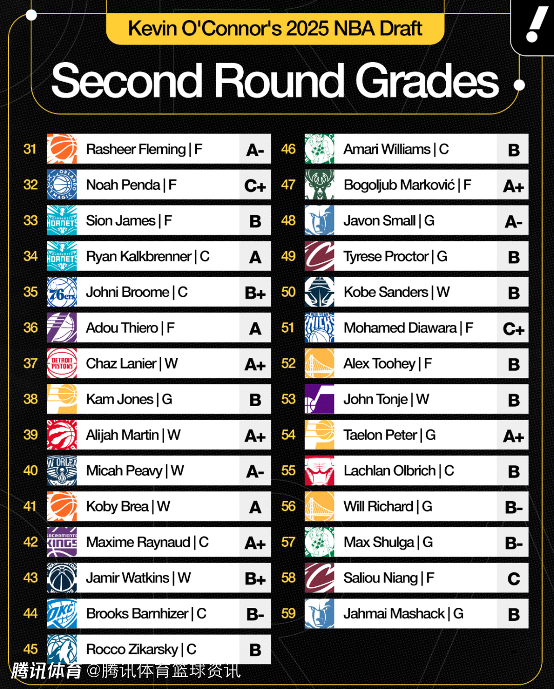 2025-06-27 11:30北京时间6月27日,2025年选秀大会已经全部结束,随后选秀专家凯文-奥康纳也对今年次轮秀进行了评级。