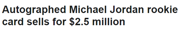 乔丹1986-87赛季新秀签名卡拍出250万 刷新乔丹新秀卡成交纪录