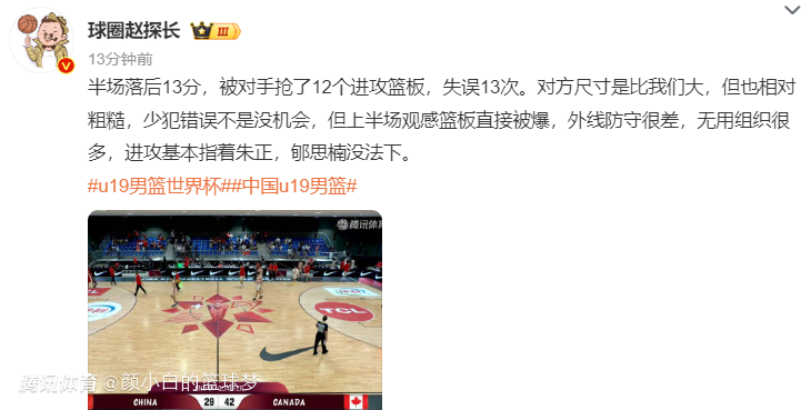 赵探长表示:上半场被对手抢了12个进攻篮板,失误13次,对方尺寸比我们大篮板各种被爆,外线防守差,无用组织太多,进攻基本指着朱正。