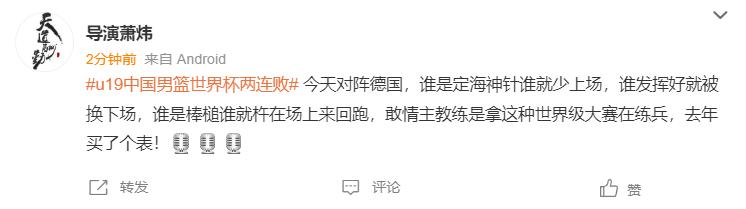 球迷:对阵德国,谁是定海神针谁下场,谁发挥好谁下场,谁是棒槌谁多打,这曲绍斌在国际大赛练兵玩儿啊。