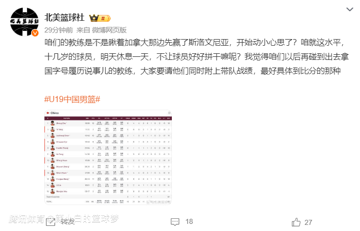 北美篮球社:曲绍斌是不是看加拿大赢了斯洛文尼亚,开始动小心思了?咱就这水平,为何不好好拼呢?以后国字号教练出去应该先拿战绩说话。