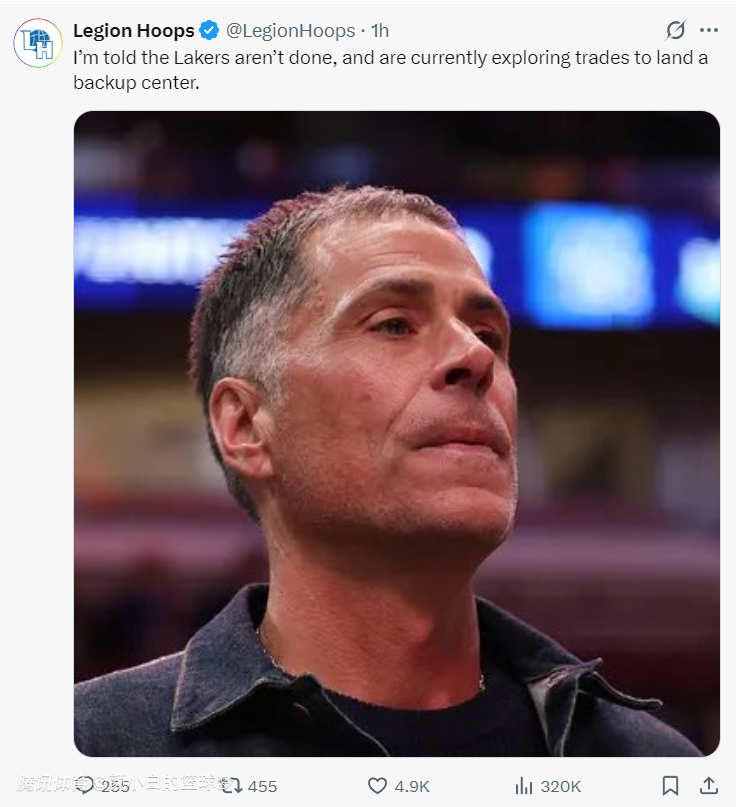 佩林卡也做了两手准备,美媒Legion Hoops还透露:我听说罗伯-佩林卡还在探索交易得到一名替补中锋。(注意是替补中锋,换言之艾顿已经确定了湖人先发五号位的席位)