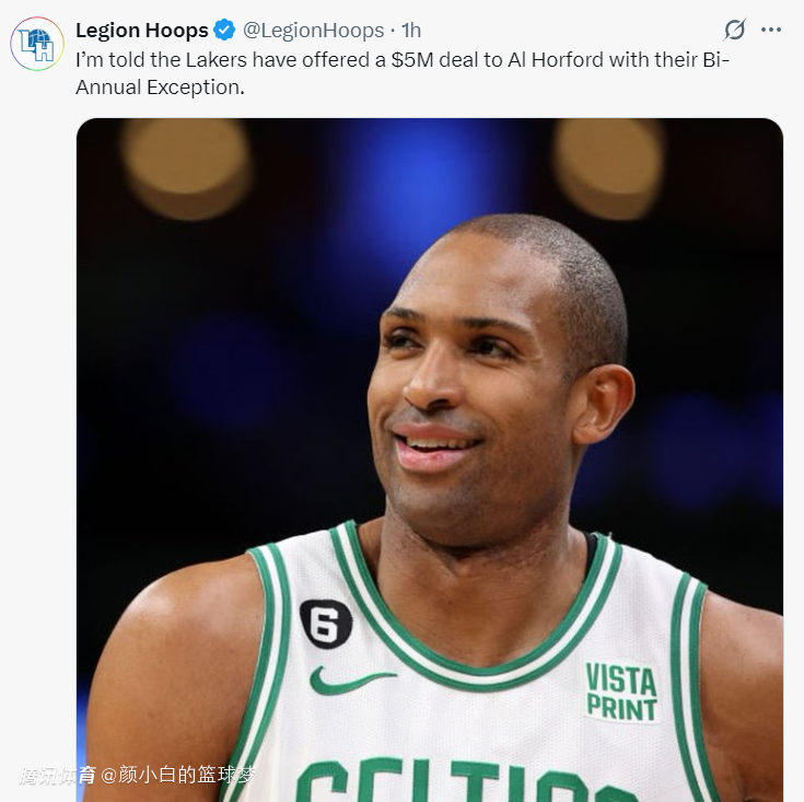 除此之外根据美媒Legion Hoops的报道,湖人队已经用价值510万的双年特例报价了艾尔-霍福德,佩林卡非常希望能引进霍福德这位39岁的老将空间型内线。
