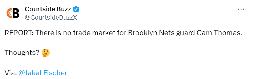 2025-07-05 09:10北京时间7月5日,根据NBA记者Jake Fischer报道,布鲁克林篮网队后卫卡姆-托马斯没有交易市场。