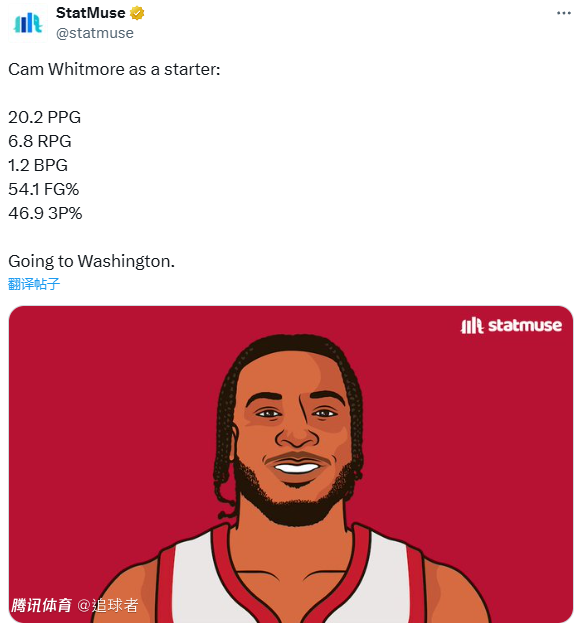 目前惠特莫尔的新秀合同还剩下2年,25-26赛季310万美元和26-27赛季540万美元,奇才必须在10月31日前执行球队选项,他们有4种不同的特例可用于交易得到惠特莫尔。
