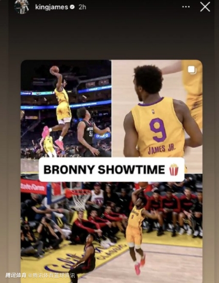 詹姆斯关注布朗尼夏联首秀 赛后更新社媒晒儿子扣篮图片