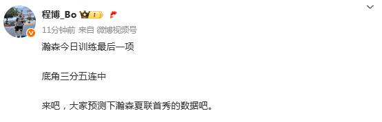 2025-07-08 10:10北京时间7月8日,杨瀚森团队的工作人员程博晒出了杨瀚森3分训练的配文说道:“瀚森今日训练最后一项,底角三分五连中”。