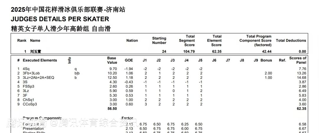 2025-07-10 18:00北京时间7月10日,在2025年中国花样滑冰俱乐部联赛济南站精英女子单人滑少年高龄组自由滑比赛中,12岁的刘玉萱在挑战萨霍夫四周跳(4S)时成功落冰。