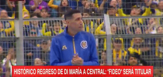 罗萨里奥中央为迪马利亚安排简短的亮相仪式。37岁的天使走进球场,现场掌声雷动,欢呼声不断,球迷喊着迪马利亚的名字。