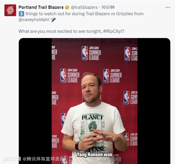 2025-07-13 11:40北京时间7月13日,NBA夏季联赛继续进行,开拓者队对阵灰熊队。赛前,开拓者队官方推特发布视频,介绍本场比赛的三大看点,而第一个看点就是中国球员杨瀚森。
